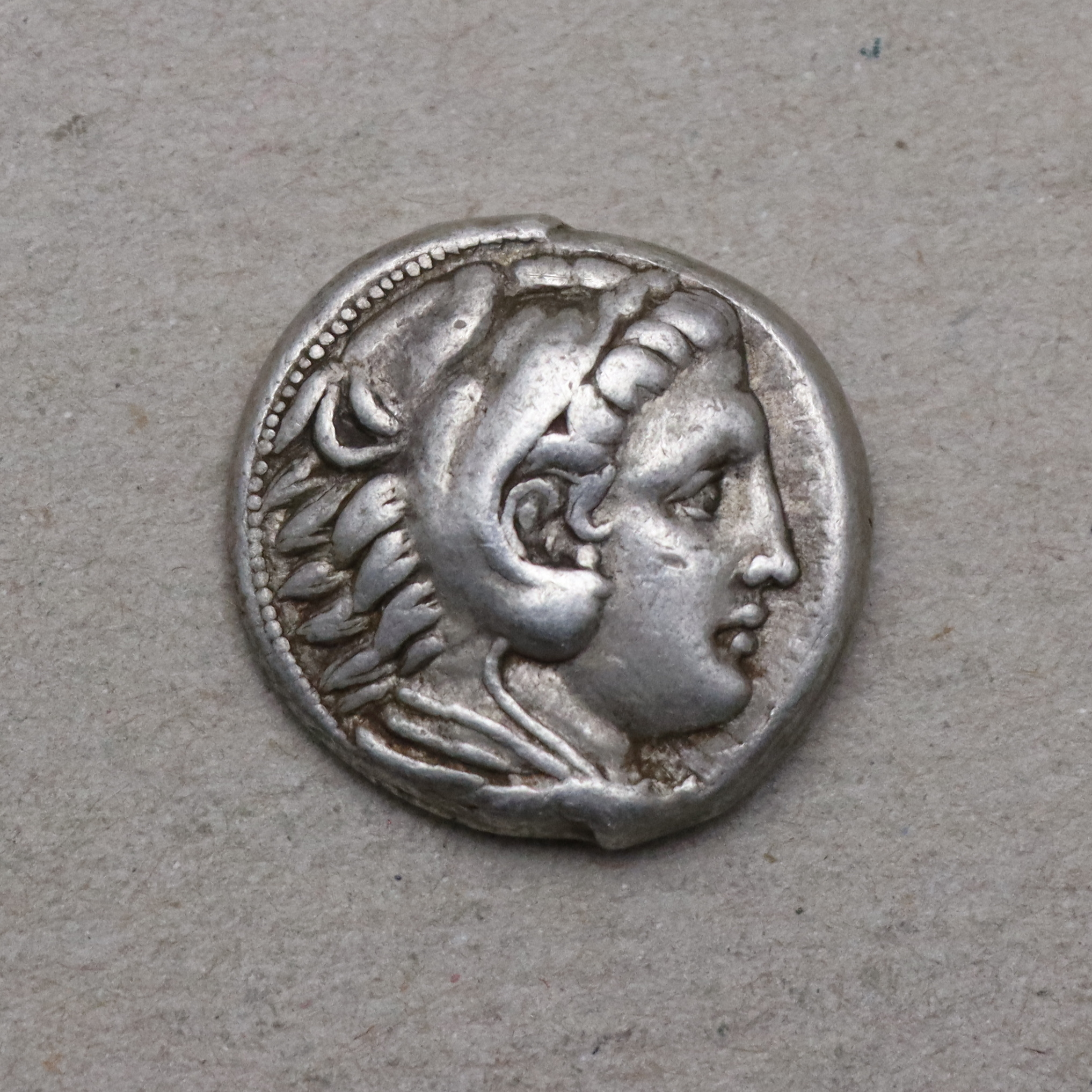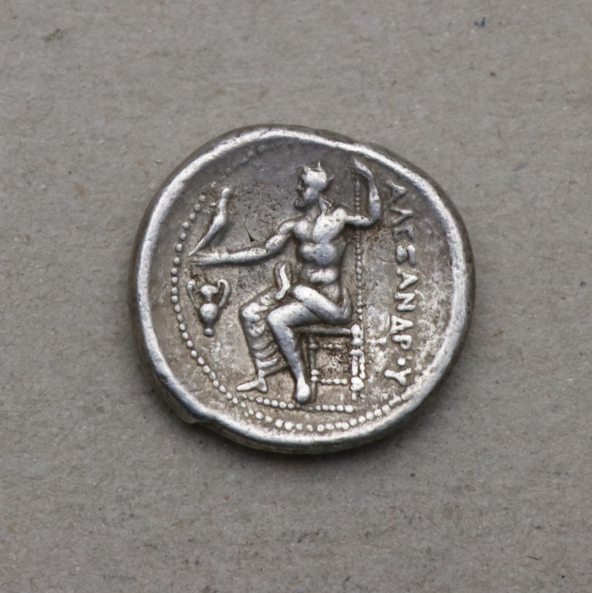 Jedná se o jednu z nejikoničtějších a nejrozšířenějších antických mincí. Avers - Hlava mladého Hérakla hledícího vpravo, oděná do lví kůže. Revers - Zeus Aëtophoros sedící na trůnu, držící orla a žezlo. Nápis AΛΕΞΑΝΔΡΟΥ.