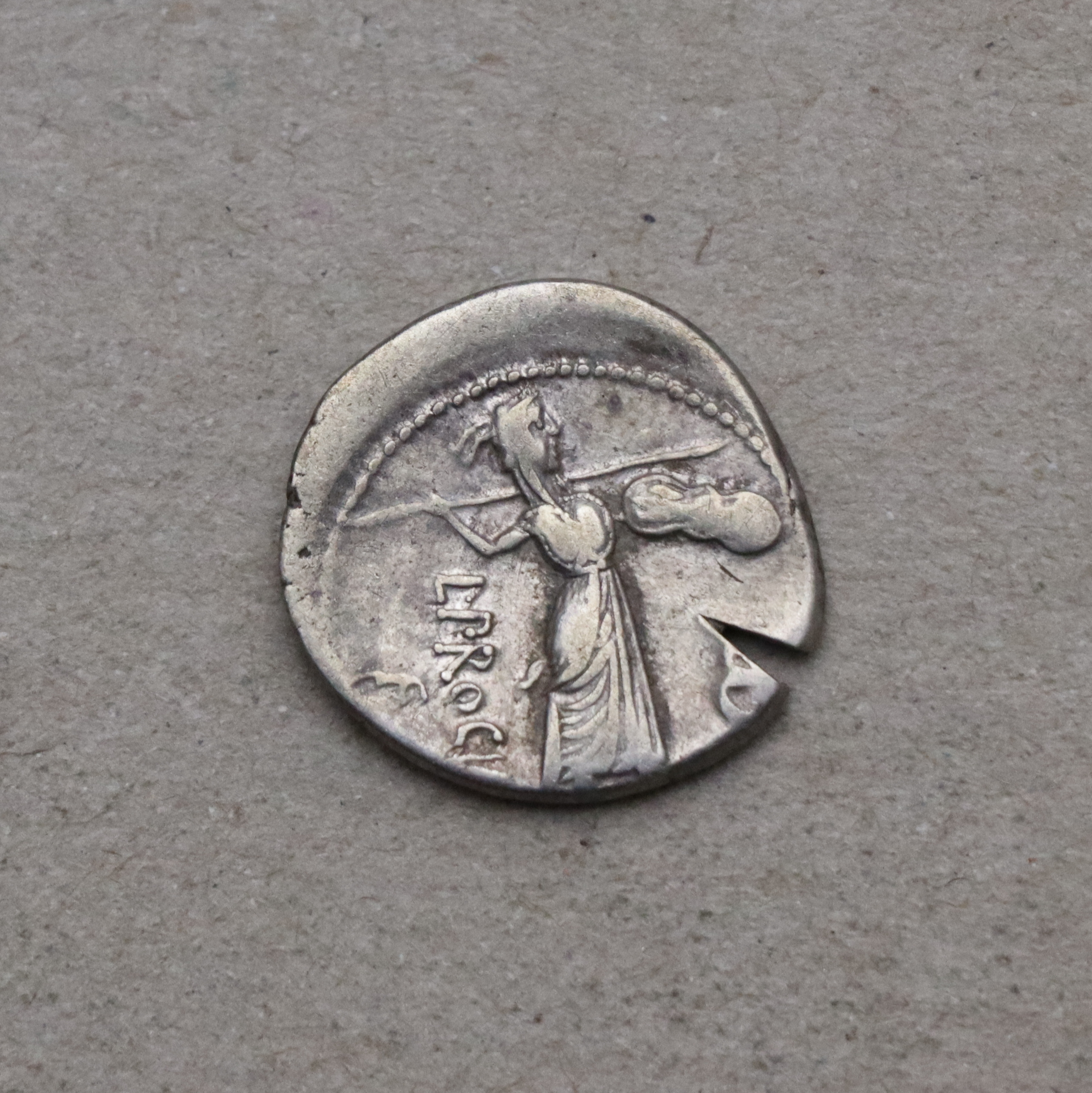 Vzácný denár ražený Luciem Prociliem s dobovým zkušebním zásekem!