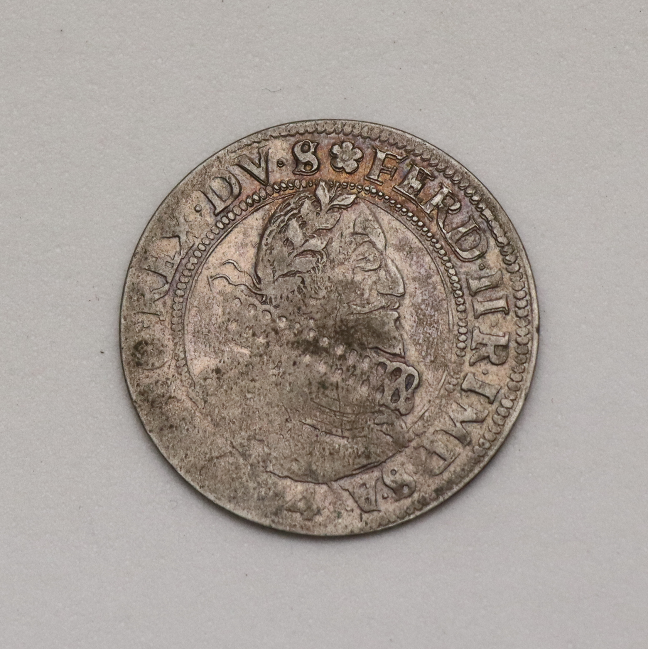 Nádherný stav, příjemná; tmavě šedá patina s výrazně červenými odlesky (v reversu i fialovými), krásný lesk, mince je místy výrazně nedoražená/otřelá.